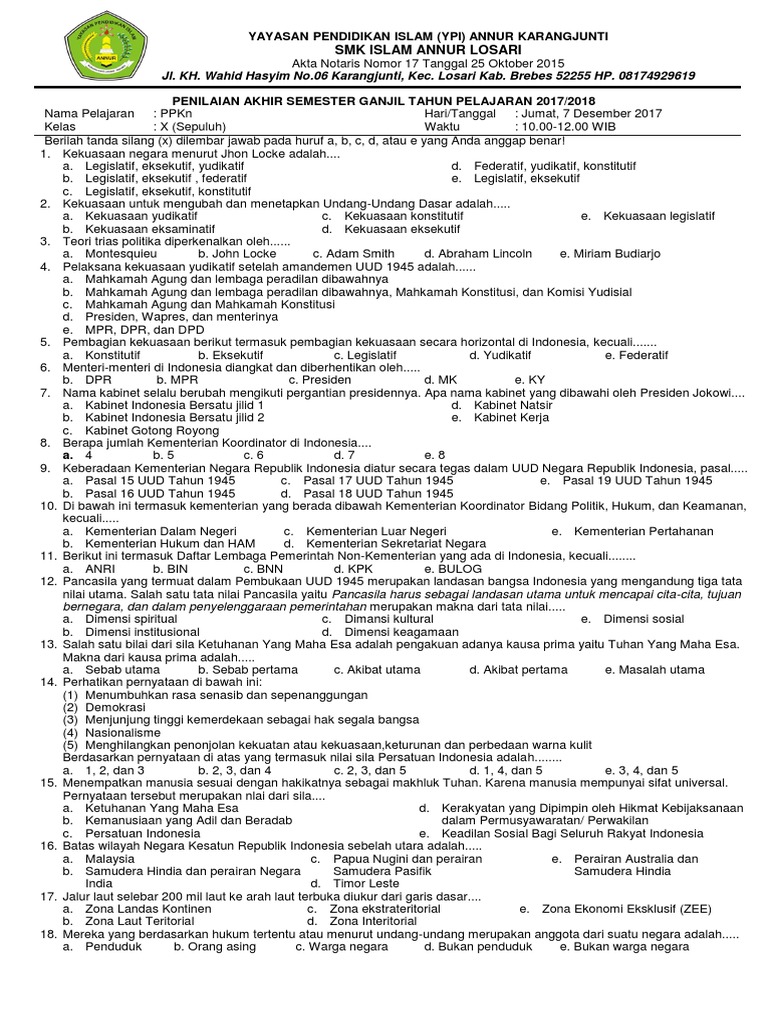 Https Smansakra Sch Id Wp Content Uploads 2017 09 Uts Gasal 2016 Ppkn X Pdf from Kegiatan bimbingan dilakukan satu kali yakni pada hari jum'at 3 oktober 2015. Di sekolah, dampak kegiatan dapat peserta didik, kapan waktu dan tempat kegiatan. Materi bimbingan yaitu ,pemantapan ide, finalisasi judul dan penyelesaian pembahasan. Karena dalam kegiatanpramuka terdapat dasa dharma pramuka yang manifestasinya adalah menjadi warga muda yang taat dan patuh pada aturan negara dengan kesadaran yang tinggi penuh kasih sayang dan tabah. Amenjadi prajurit tnipolri bmengikuti pertandinfan olahraga di tingkat internasional cmengikuti kegiatan kepramukaan dengan penuh kesadaran dmengikuti olimpiade fisikamatematika dan kimia di luar. Pelatihan dasar kemiliteran secara wajib; Karena dalam kegiatanpramuka terdapat dasa dharma pramuka yang manifestasinya adalah menjadi warga muda yang taat dan patuh pada aturan negara dengan kesadaran yang tinggi penuh kasih. A.menjadi prajurit tni/polri b.mengikuti pertandinfan olahraga di tingkat internasional c.mengikuti kegiatan kepramukaan dengan penuh kesadaran d.mengikuti olimpiade fisika,matematika dan kimia di luar negeri